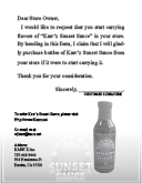 If you would like to request that your local market start carrying Karr'z Sunset Sauce, then print this pre-made request form! After printing it, sign your name and bring it into your local market! Let them know you want the sauce!